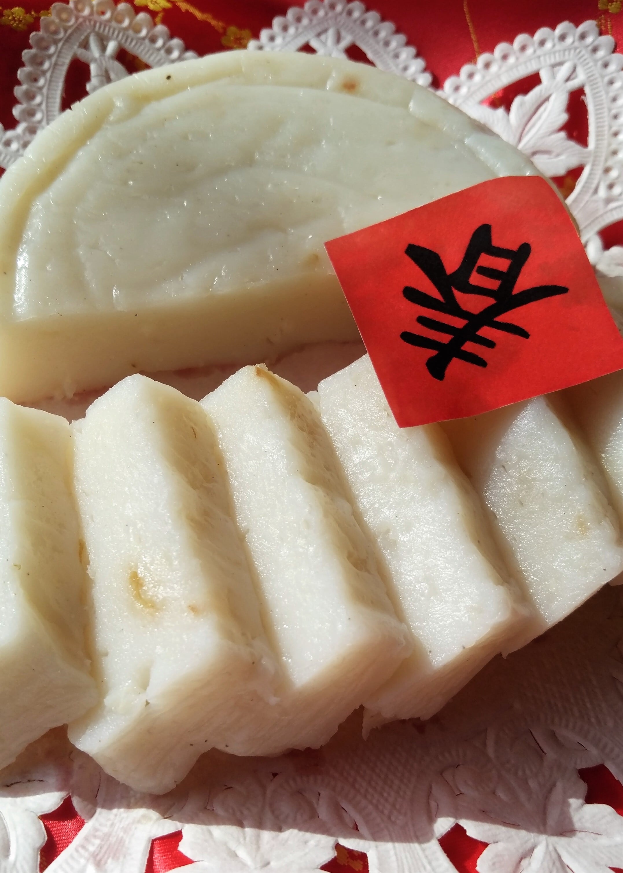 年糕はもち米の粉を蒸した食品で、日本でいうお餅です。旧正月に台湾では神様と先祖を祭る時にお供えとして良く使われています。お正月に日本では縁起を担いで年越しそばやおせち料理が食卓に並びます。台湾でも家族健勝と商売繁盛の念願を込めた食べ物がたくさん有ります。年糕もその一つです。
